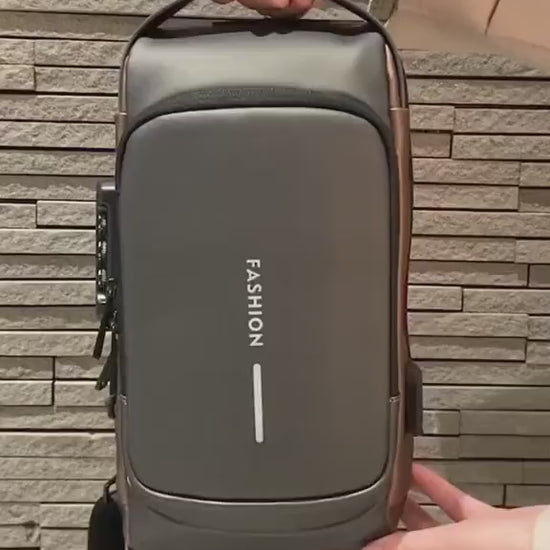 This crossbody bag specially for men has adjustable belt can fit most people to use, you can wear this bag as chest bag, crossbody bag, any style what you want to wear, bag has a portable handle, so you can easily hold in hand, bag has password lock method initial password is 0000 you can change it after turning the password wheel, main bag has zipper pocket + 1 * 9.7 inch tablet pocket, zipper quality is good, exterior look : front zipper pocket + shoulder bag, back zipper pocket has stored 9.7 Inch tablets, phones, wallets, keys, small towels etc, this bag stores travel items, it will be made of high density water repellent and scretch resistance nano materials, This bag look like mini travelling bag, Easy to use this bag.